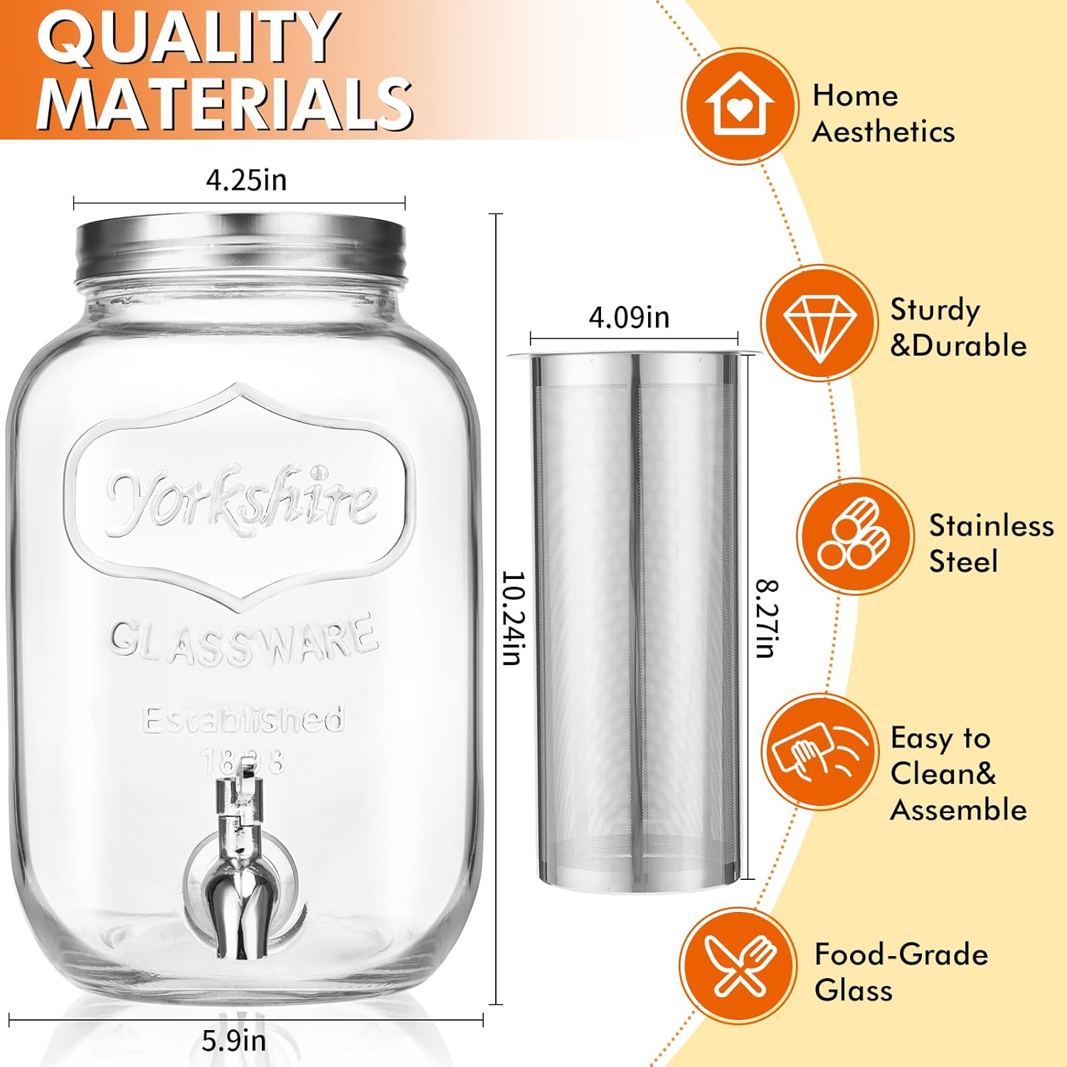 1 Gallon Kombucha Starter Kit, Glass Kombucha Jar with Spigot and Stainless Steel Mesh Filter Fermentation Kit for Home Brewed Kombucha Bottles, Includes Test Strips, Measuring Cups, Cloth Top