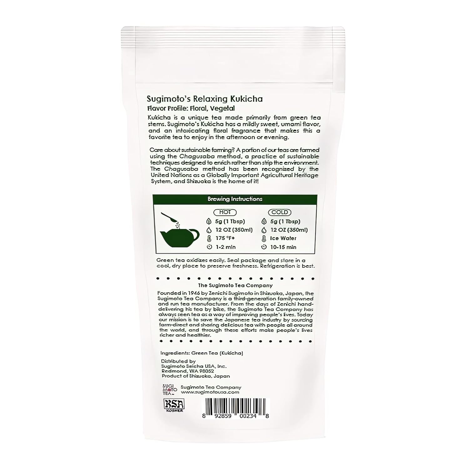 - WHAT IS KUKICHA - KUKICHA is made from the stems of young tea leaves separated during the sencha refining process and is also called "twig tea". Sugimoto's relaxing Kukicha has a mildly sweet, umami flavor, and an intoxicating floral fragrance that makes this a favorite tea to enjoy in the afternoon or evening.