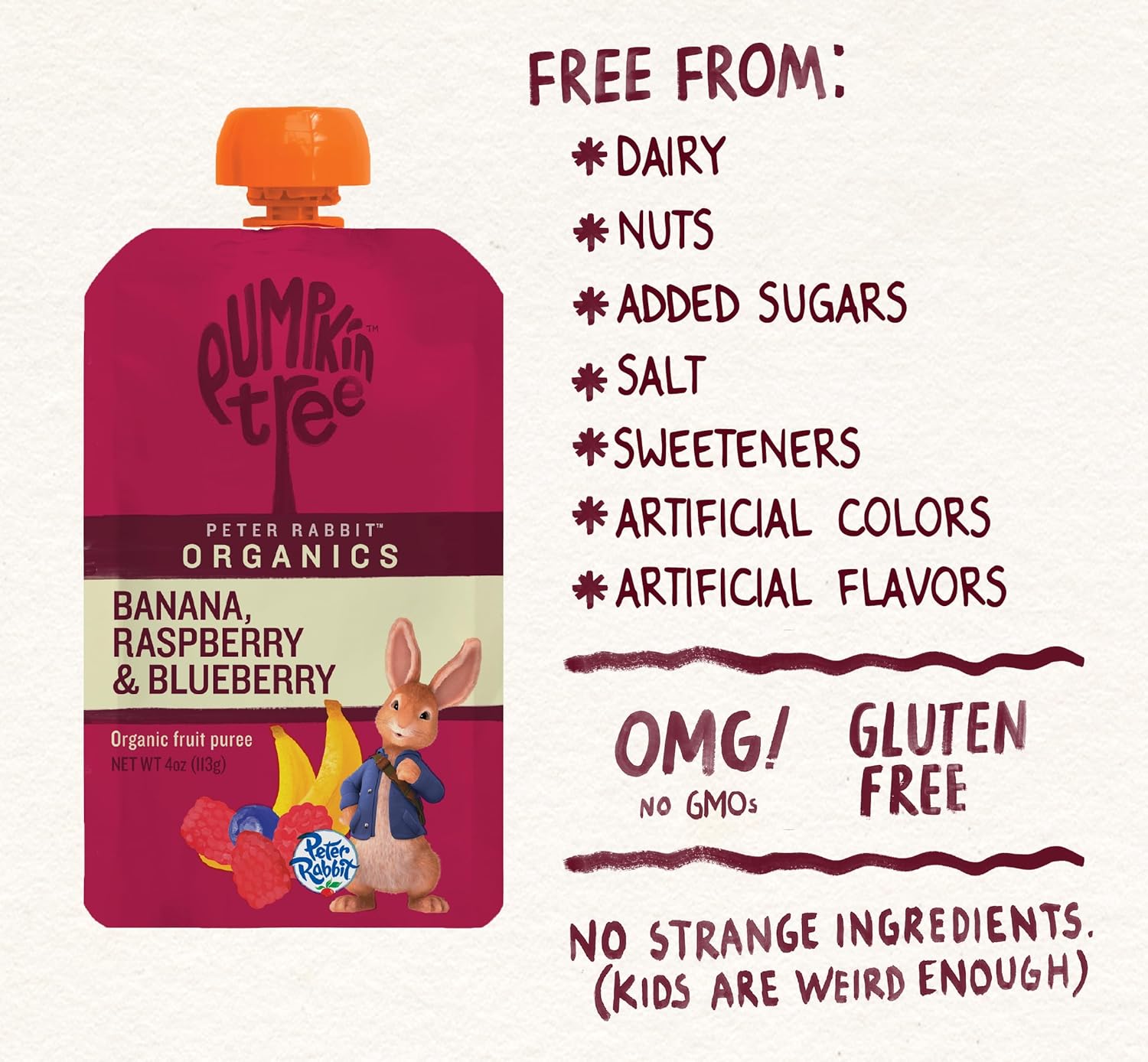 - Peter Rabbit Organics Baby Raspberry Banana Blueberry, USDA Certified Organic, Non-GMO, 4 Ounce (Pack of 10)
