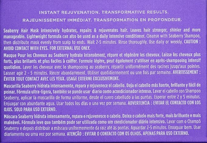 Obliphica Seaberry Hair Mask - Deep Conditioning Hydrating Treatment for Dry and Damaged Hair - Moisturizing Hair Repair and Growth Mask for Medium, Coarse, and Color-Treated Hair - 8.5 Ounces