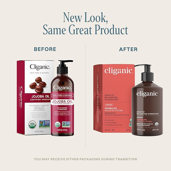 Cliganic Organic Jojoba Oil 16oz with Pump, 100% Pure | Bulk, Moisturizing Oil for Face, Hair, Skin & Nails | Natural Cold Pressed (Packaging May Vary)