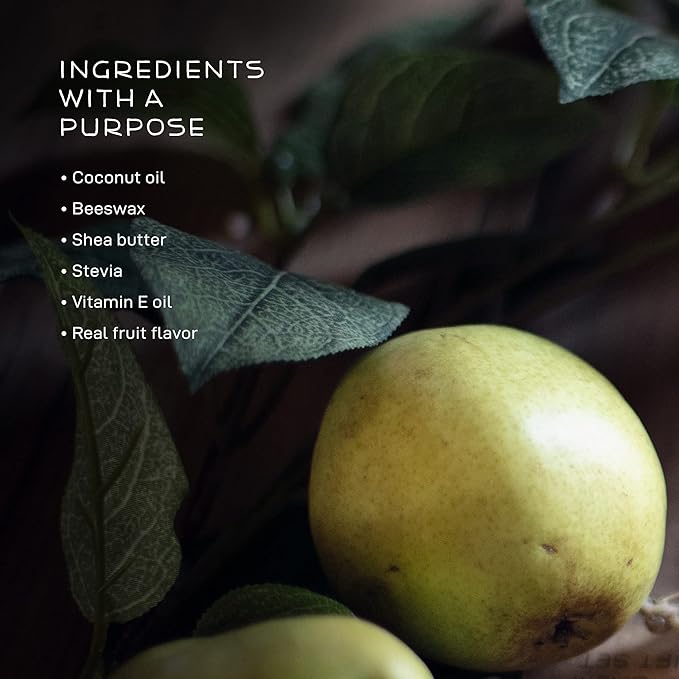 - PEAR & ALMOND LIP BALM - Chapped lips don't stand a chance against our soothing and hydrating lip balm. Formulated with the purest blend of organic shea butter and coconut oil for a smooth and silky balm that your lips can easily absorb. Flavored with real organic fruit, so it tastes of sweet apricots picked fresh from the farm!