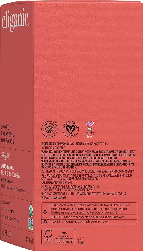 Cliganic Organic Jojoba Oil 16 oz, 100% Pure | Bulk, Natural Cold Pressed Unrefined Hexane Free for Hair & Face | Base Carrier Oil