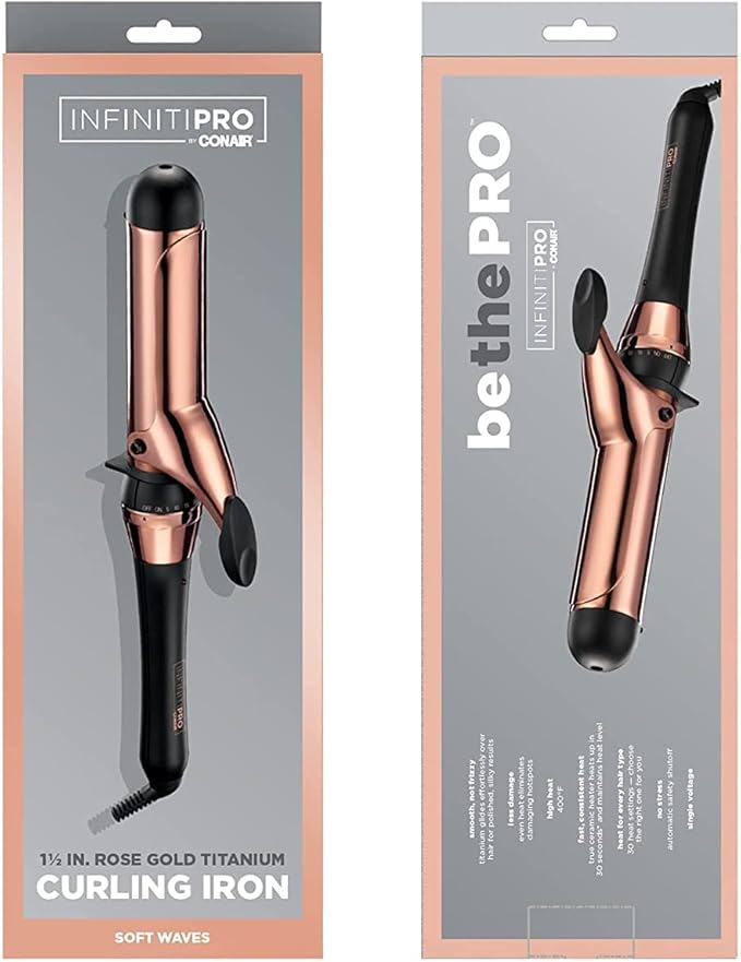 INFINITIPRO BY CONAIR Rose Gold Titanium 1 1/2-Inch Curling Iron, 1 ½ inch barrel produces soft waves – for use on medium and long hair