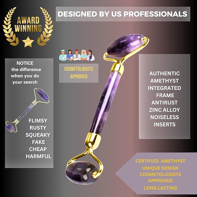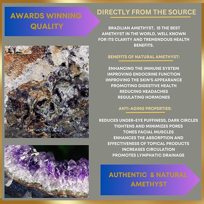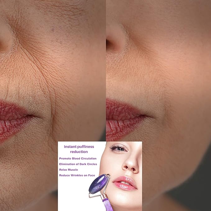 100% Authentic Amethyst Mother's day Gift Set Amethyst Eye Mask Amethyst Jade Roller & Gua Sha Set Facial Mask Instant Puffiness promote relaxation and relief stress.