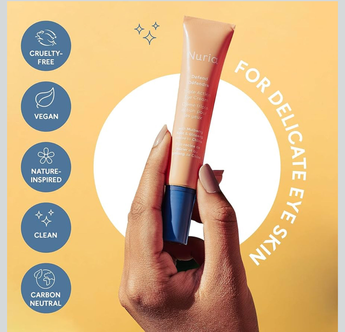 Nuria - Defend Triple Action Eye Cream for Dark Circles, Puffiness and Fine Lines, Nourishing Under Eye Cream with Ginseng and Mulberry Root, 15mL/0.5 fl oz