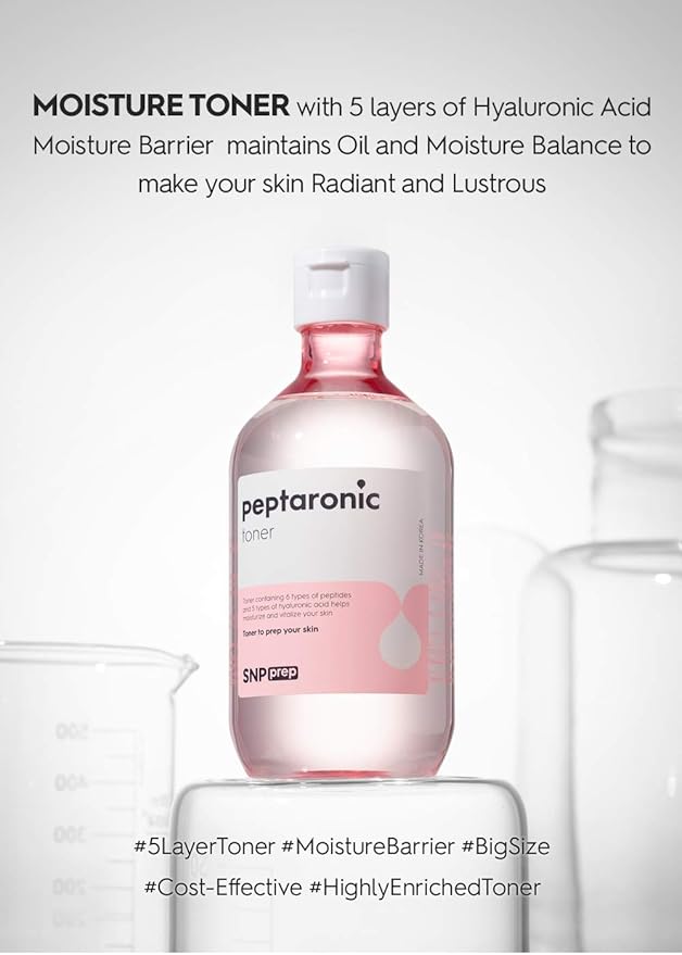 SNP PREP Skincare Set | 4-in-1 Korean Skin Care Set | Peptaronic Complete Skin Care Set | Includes Facial Toner, Cream, Face Serum, and Ampoule Sheet Face Masks | Skin Care Gift Set | 10 Sheets