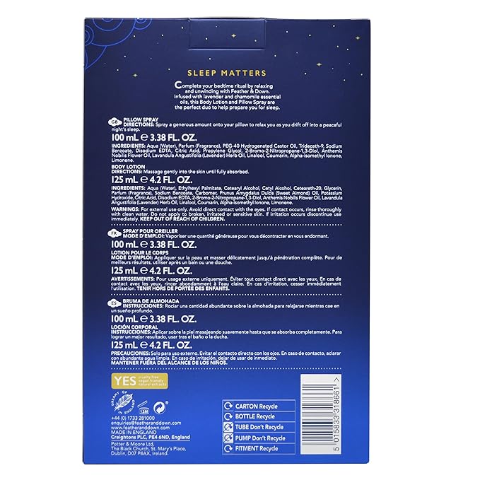Feather & Down Sweet Dream Relax and Unwind Gift Set (100ml Pillow Spray & 125ml Body Lotion) - With Calming Lavender & Chamomile Essential Oils