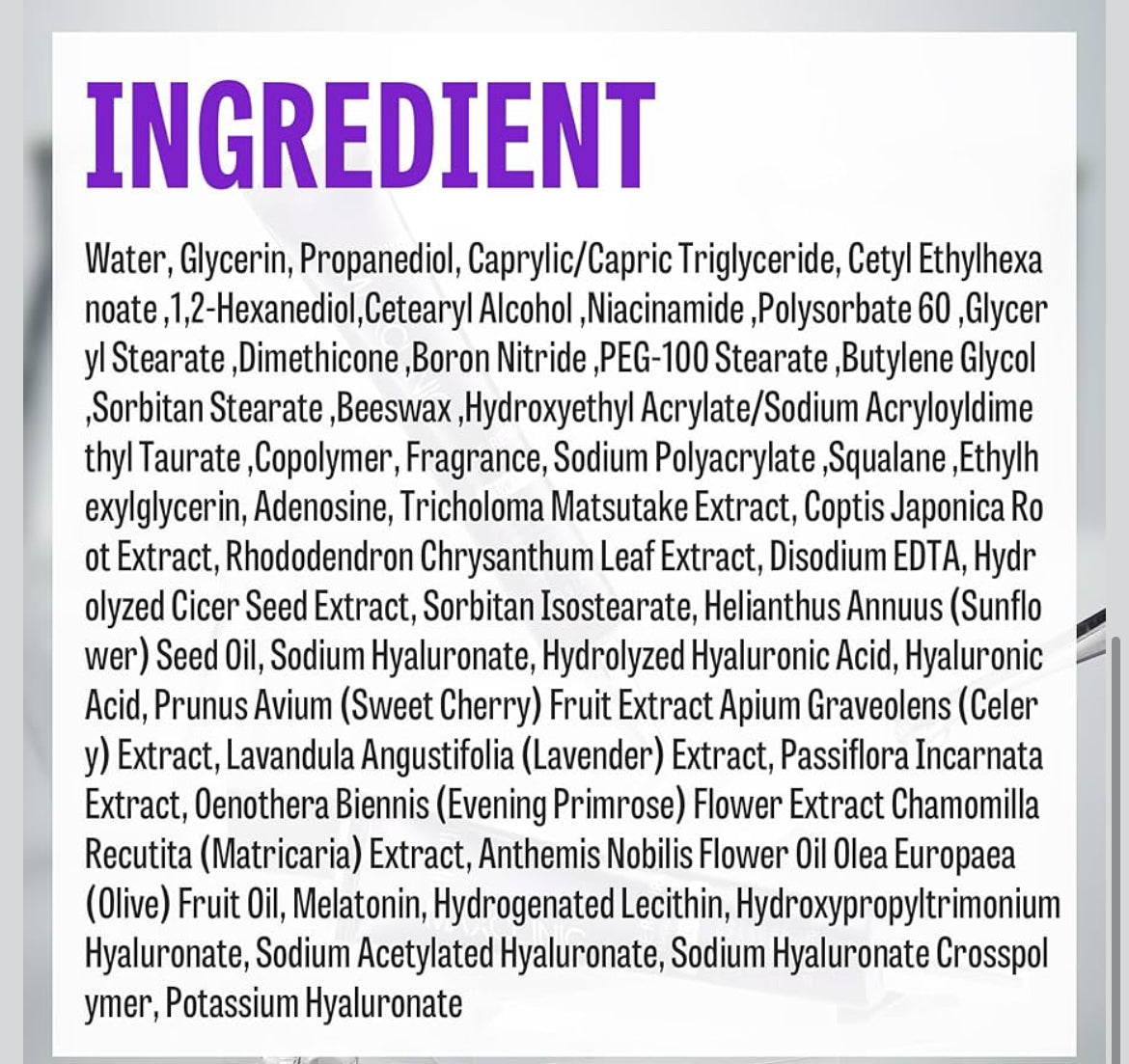 - RICH SOOTHING MOISTURIZATION. Infused with 7 types of Hyaluronic Acid and Rhododendron Chrysanthemum Leaf Extract, this dark circle eye cream offers exceptional moisturizing and soothing properties. It helps keep the delicate skin around the eyes well-hydrated and secured to reduce dryness and puffiness.
