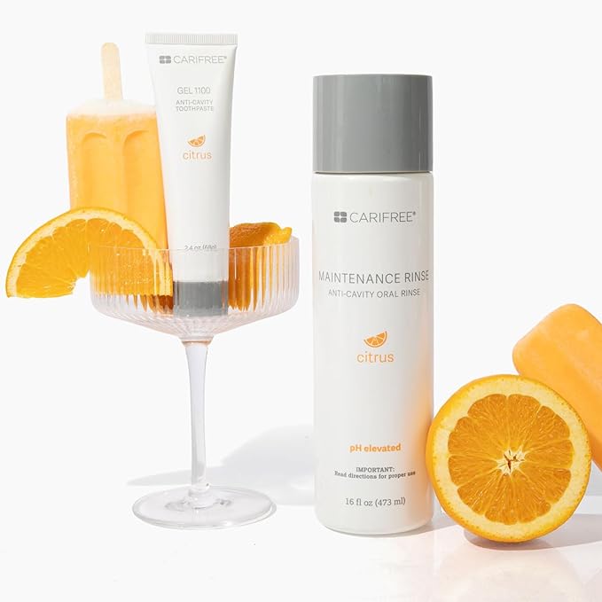 CariFree Maintenance & Prevention Kit, Citrus, Anti-Cavity Fluoride Toothpaste & Mouthwash Freshens Breath and Moistens Mouth, Dentist Recommended for Oral Care (6 Piece Set)