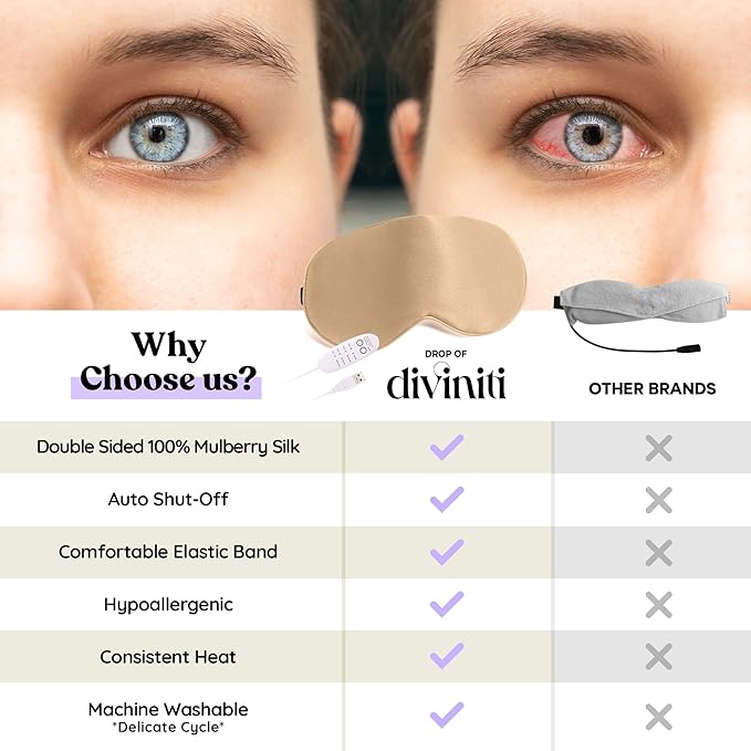 Heated Eye Mask for Dry Eye Relief - Stye Eye Treatment, Warming Eye Mask for Dry Eyes Mask Warm Compress for Eyes, Sinus Mask Heated Eye Patch - Dry Eye Mask Moist Heat Electric Warming - Champagne