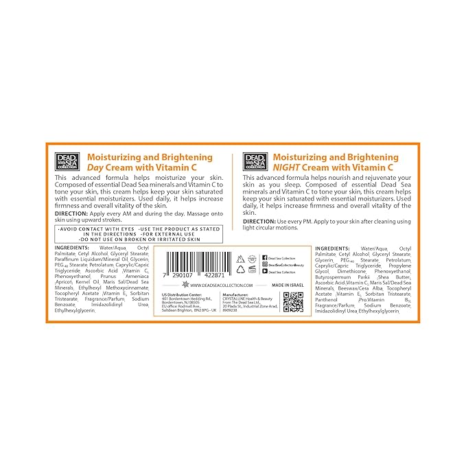 Dead Sea Collection Day and Night Cream Kit with Vitamin C - Anti-Wrinkle - Dead Sea Minerals - Nourishing, Moisturizer, Hydrating and Smoothing Face Cream (3.38 fl.oz)