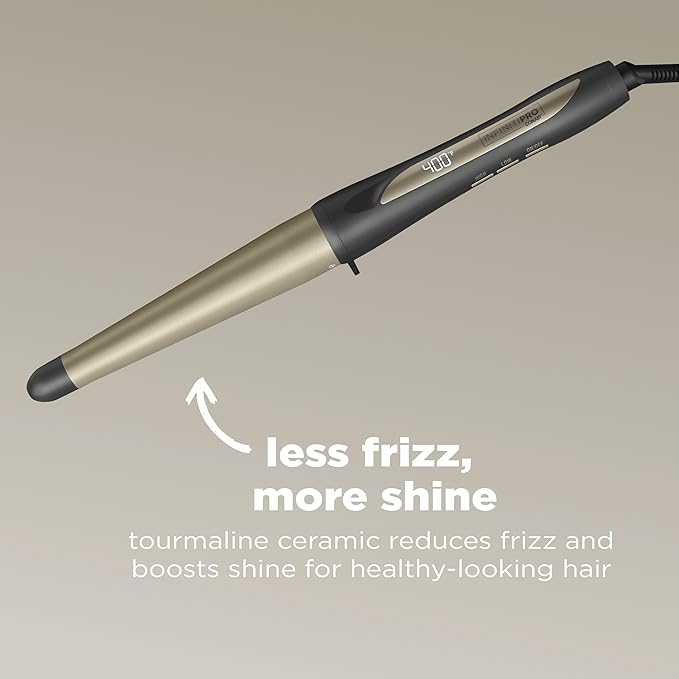 - Tourmaine Ceramic Curling Wand: Less frizz, more shine with tourmaline ceramic, which reduces frizz and boosts shine for healthy-looking hair. Create the tousled waves you love with the InfinitiPRO by Conair 1.25 Inch Curling Wand.