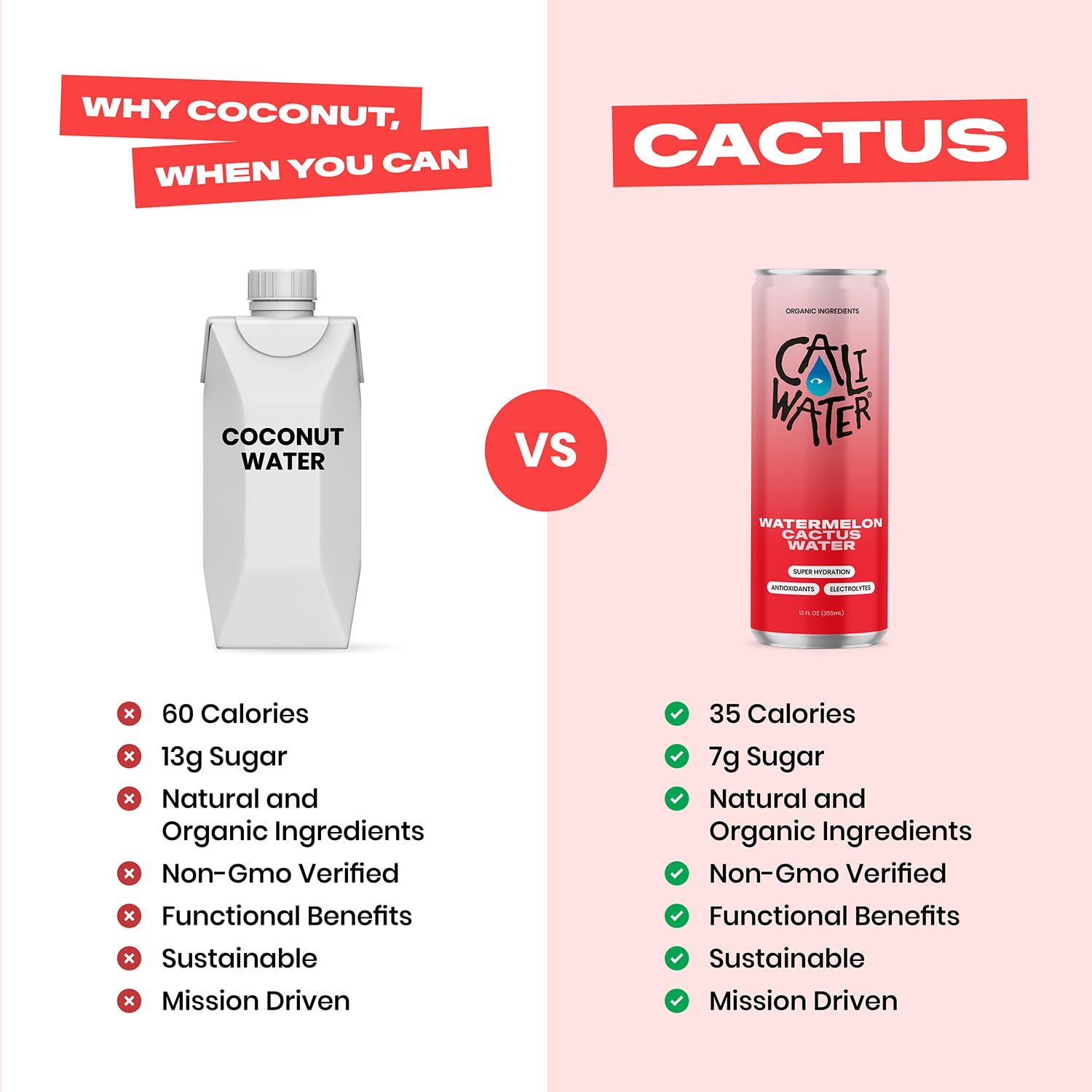 - Why Coconut When You Can Cactus? - With half the sugar and calories of coconut water and a crisp, delicious taste, Caliwater beverages are the healthy drinks you've been searching for. 5 natural electrolytes, 5g sugar, and 25-35 calories.
