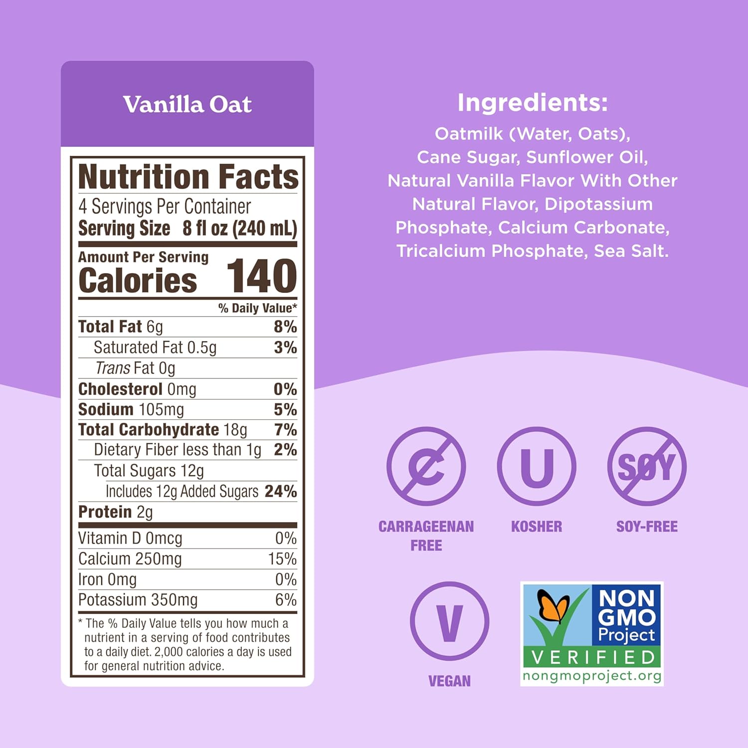 - SIMPLE PLANT-BASED INGREDIENTS: Vanilla Oat Barista Blend is made with plant-based, dairy-free ingredients that are Non-GMO Certified, Kosher, vegan and free from soy and carrageenan.