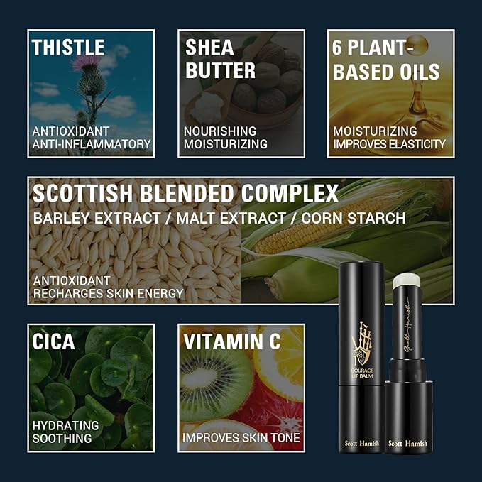 Courage Lip Balm – Hydrating Lip Balm for Men - Shea Butter & Cica to Moisturize & Soothe Dry, Chapped Lips – Anti Aging Lip Moisturizer to Restore Radiance and Improve Softness of Lips, 0.12oz.