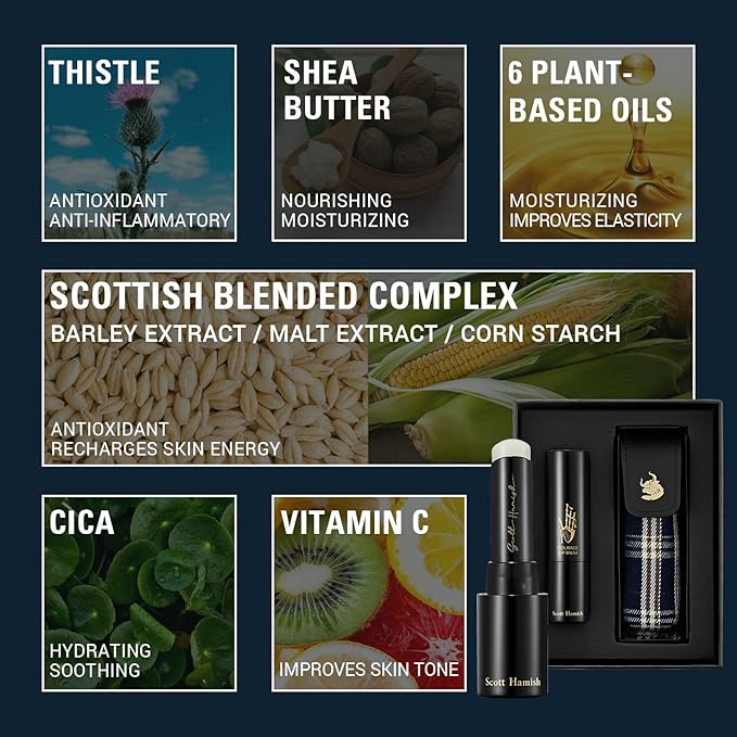 Courage Lip Balm & Case Gift Set - Pure Cowhide Leather Chapstick Holder with Hydrating Lip Balm for Dry Cracked Lips - Flavored Lip Balm & Lip Balm Holder Gift Set for Men