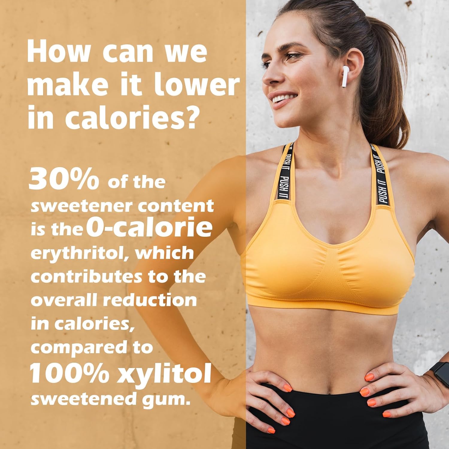- LOWER CALORIES—We have successfully reduced the calorie content by incorporating 30% calorie-free erythritol into our sweeteners. As a result, you can enjoy our gum guilt-free and share it with others.