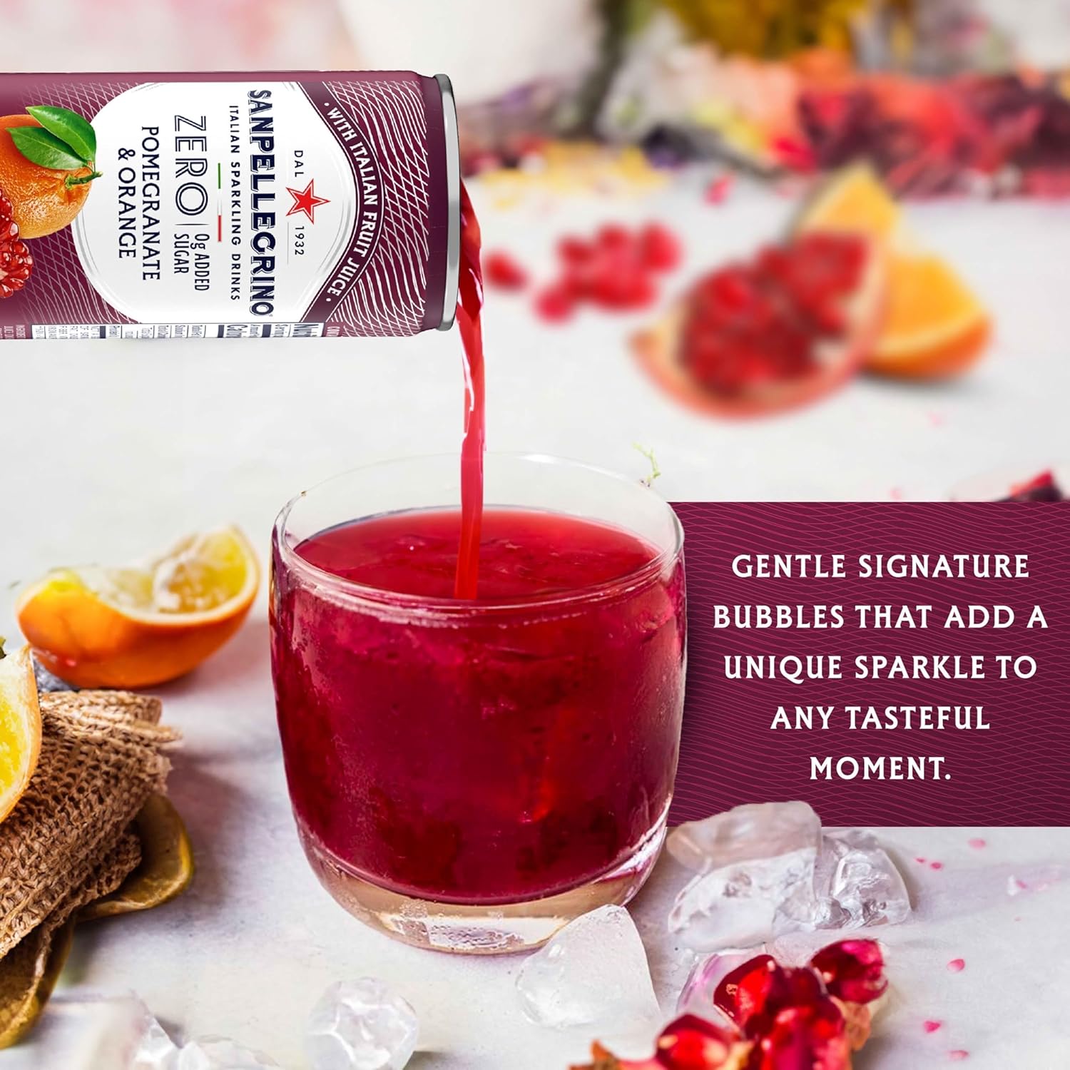 Sanpellegrino Zero Grams Added Sugar Pomegranate & Orange Italian Sparkling Drink, 24 Pack Of 11.15 Fl Oz Cans, Sanpellegrino Italian Sparkling Drinks, Low-Calorie Fruit Juice Beverages