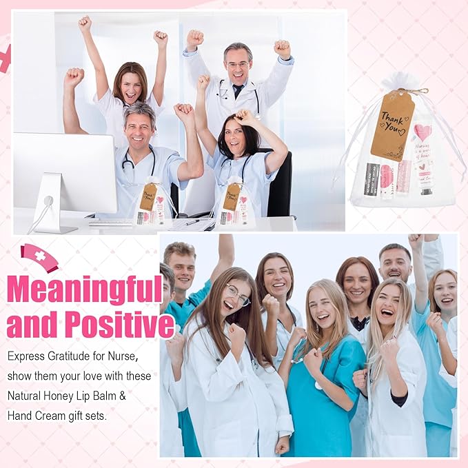 Nurse Appreciation Gifts Set Thank You Gifts Lip Balm Hand Cream for Dry Cracked Hands with Organza Bags Thank You Tags Jute for Party Holiday Nurse' Day(24 Sets)