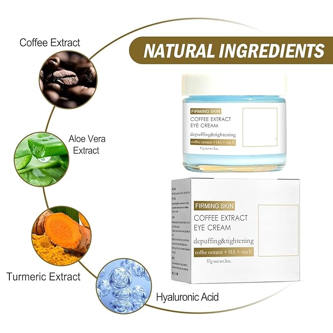 Caffeine Eye Cream, Caffeine Eye Cream, Caffeine Anti-Wrinkle Overnight Eye Cream, Firms and Reduces Eye Bags, Wrinkles, Dark Circles, and Fine Lines (2PCS)