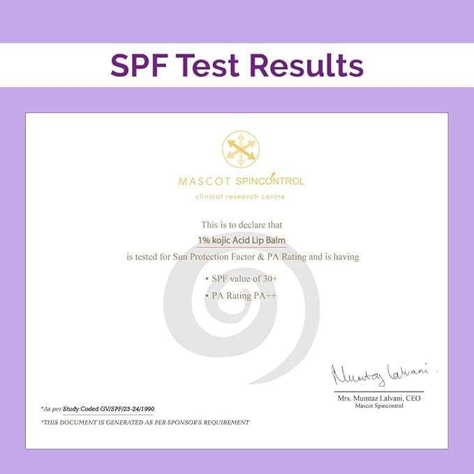 1% Kojic Acid Lip Balm With Alpha Arbutin & Hyaluronic Acid, SPF 30 PA++ for Dark & Pigmented Lips - 4g