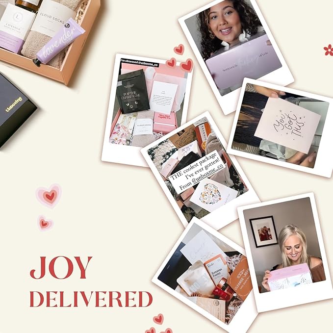 Unboxme Lavender Spa Gift Basket For Women - Relaxation Gifts I Self Care Package with Lavender Scented Candle, Wine Tumbler, Bath Bomb, Soap, Socks, Hand Cream & Bonus Card | Sympathy Gift