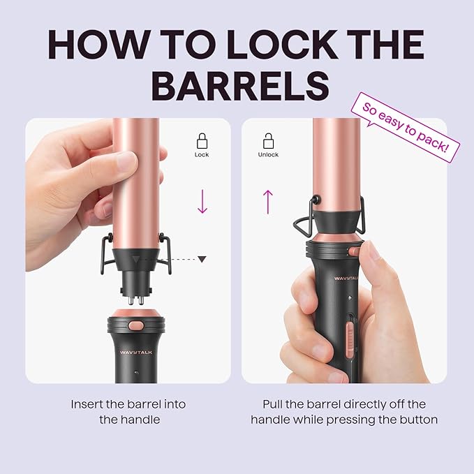 - 5 Interchangeable Barrels: This dual-voltage wand curling iron has 5 barrels that can be assembled into a thermal hair brush, a 3 barrel curling iron, a 0.5" small curling iron, a 1 inch curling iron and a 1 1/4 inch curling iron for long hair to create various hairstyles