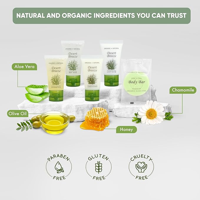 Amenity Kit | Boxed Hotel Toiletries | Bulk Set 1oz Travel Size Shampoo, Conditioner, Lotion, Body Wash & Body Bar Soap for Guest Hospitality AirBnB/Vacation Rentals | 1 set per case