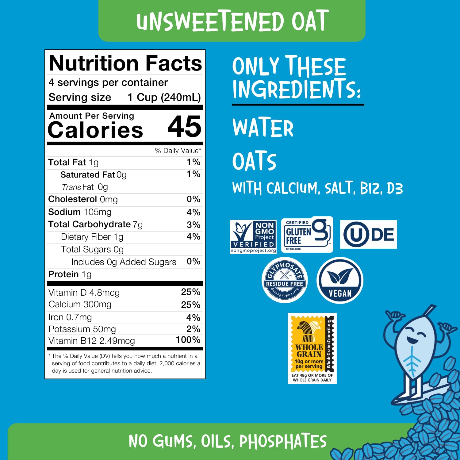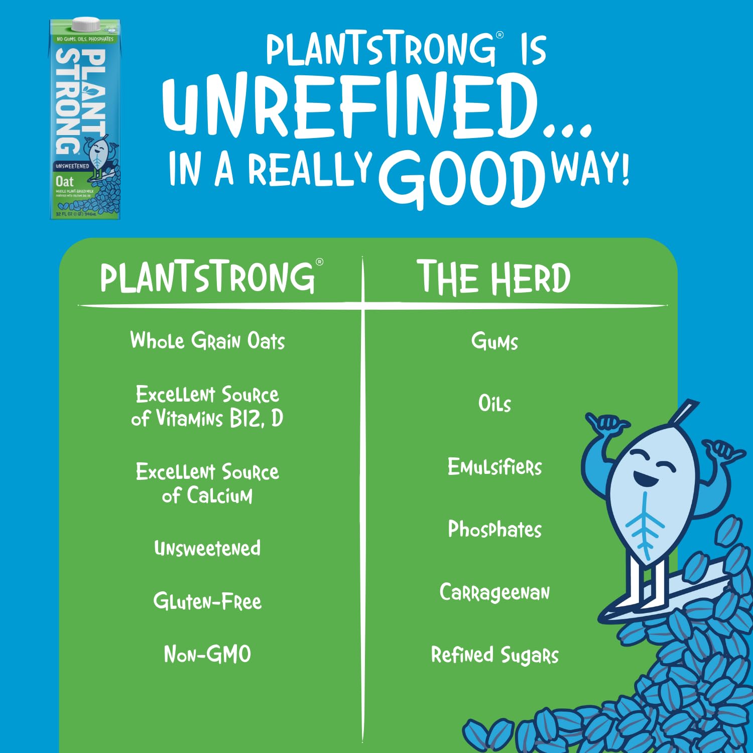 PLANTSTRONG Oat Milk Unsweetened 32oz (6 Pack) - NON-GMO - Plant Based, Vegan - Gluten Free Dairy Free - Shelf Stable - Lactose Free Milk - No Gums or Oils