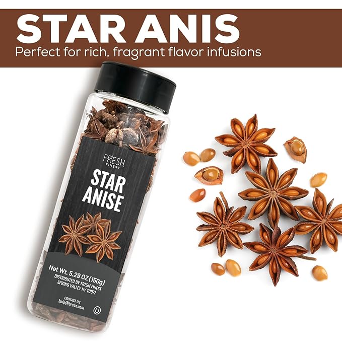Fresh Finest Whole Star Anise 5.29oz - Premium Quality Star Anise Whole - All-Natural, Non-GMO, Gluten-Free, Kosher - Perfect for Baking, Cooking, and Tea