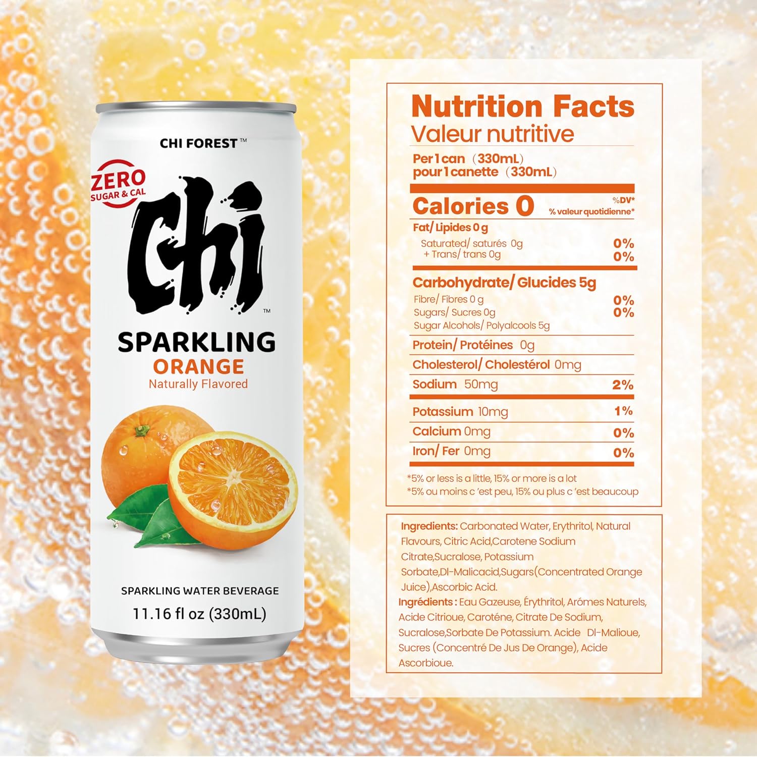 CHI FOREST Orange sparkling water, 0 Sugar 0 Carolies, 11.15 oz* 24 cans