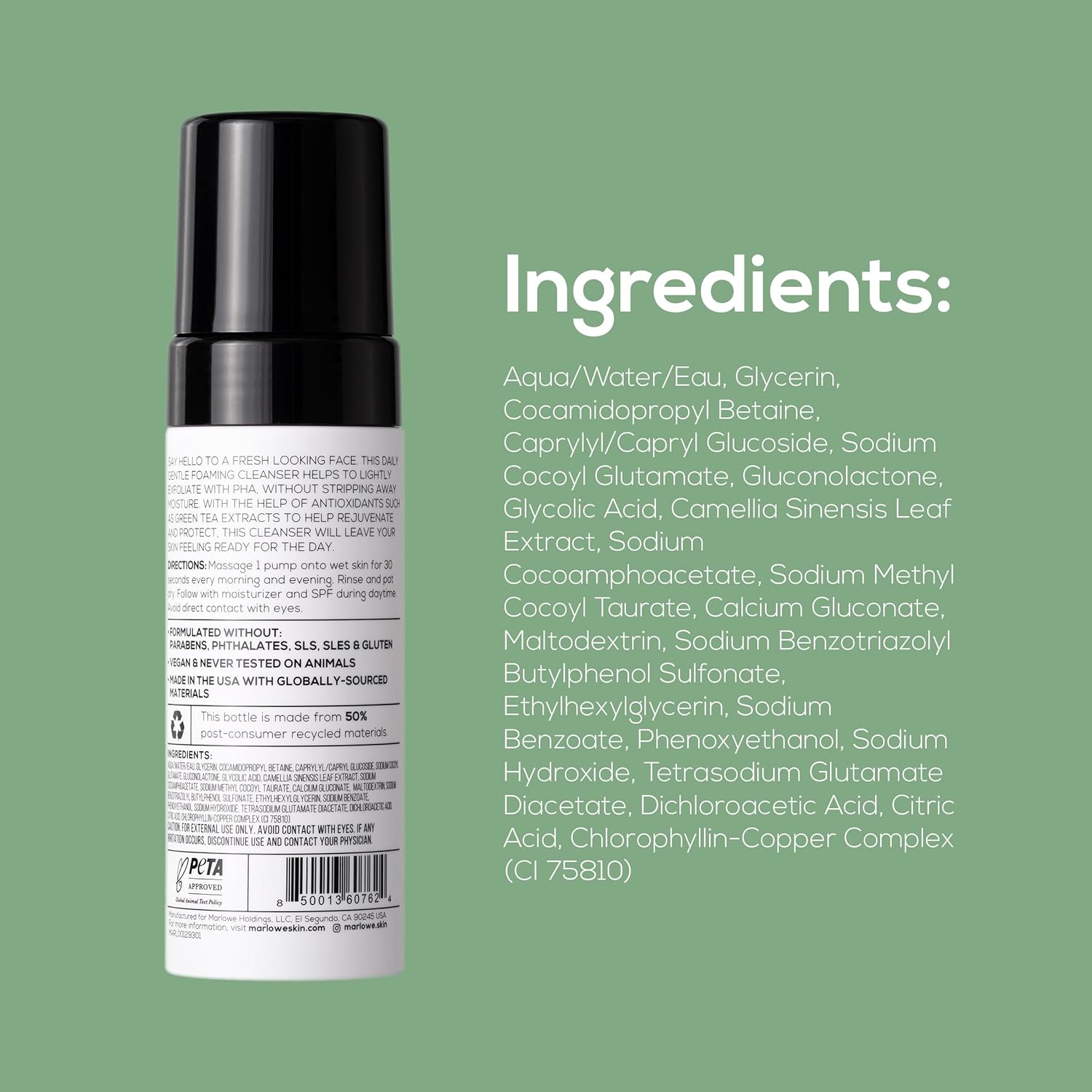- Exfoliates, Brightens & Defends: Say hello to a fresh looking face. MARLOWE.'s daily gentle face cleanser helps to lightly exfoliate with PHA without stripping moisture, leaving your skin brighter, smoother and feeling ready for the day
