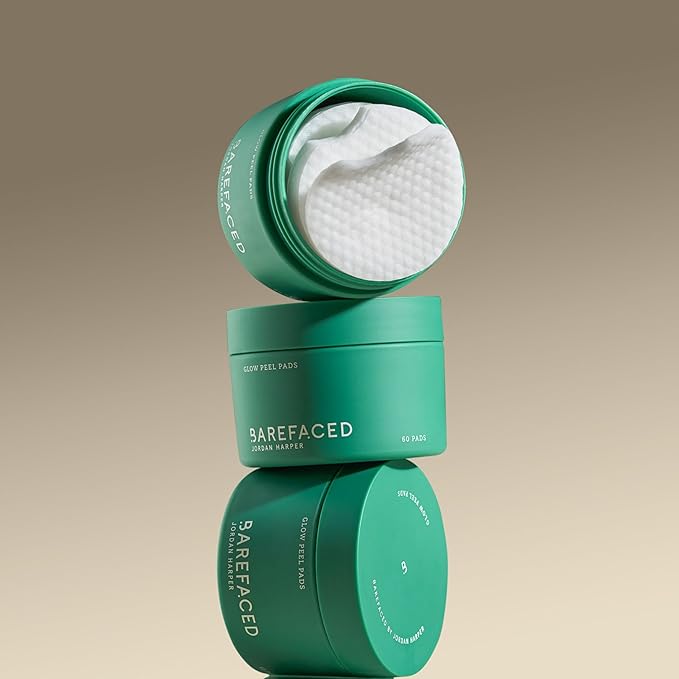 Barefaced Glow Peel Pads (60 Count) - Deep Exfoliating Face & Body Pads with 15% Glycolic Acid, Squalane & Vitamin E - Smooths Texture, skincare