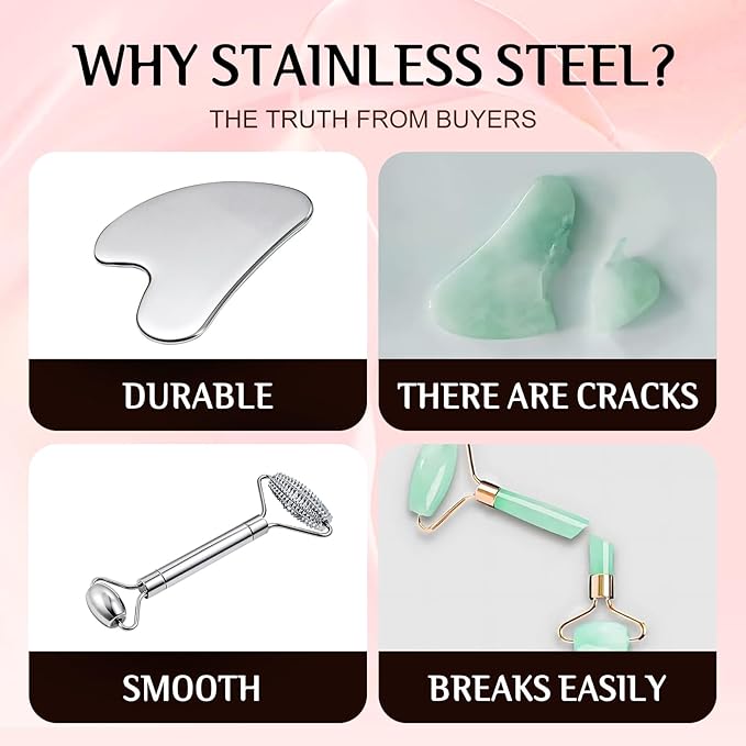 Gua Sha Facial Tools and Face Roller Set, Lymphatic Drainage Massager,Stainless Steel Facial Sculpting Eyes Roller Guasha for Face, Chin & Jawline Sculpting,Skin Care