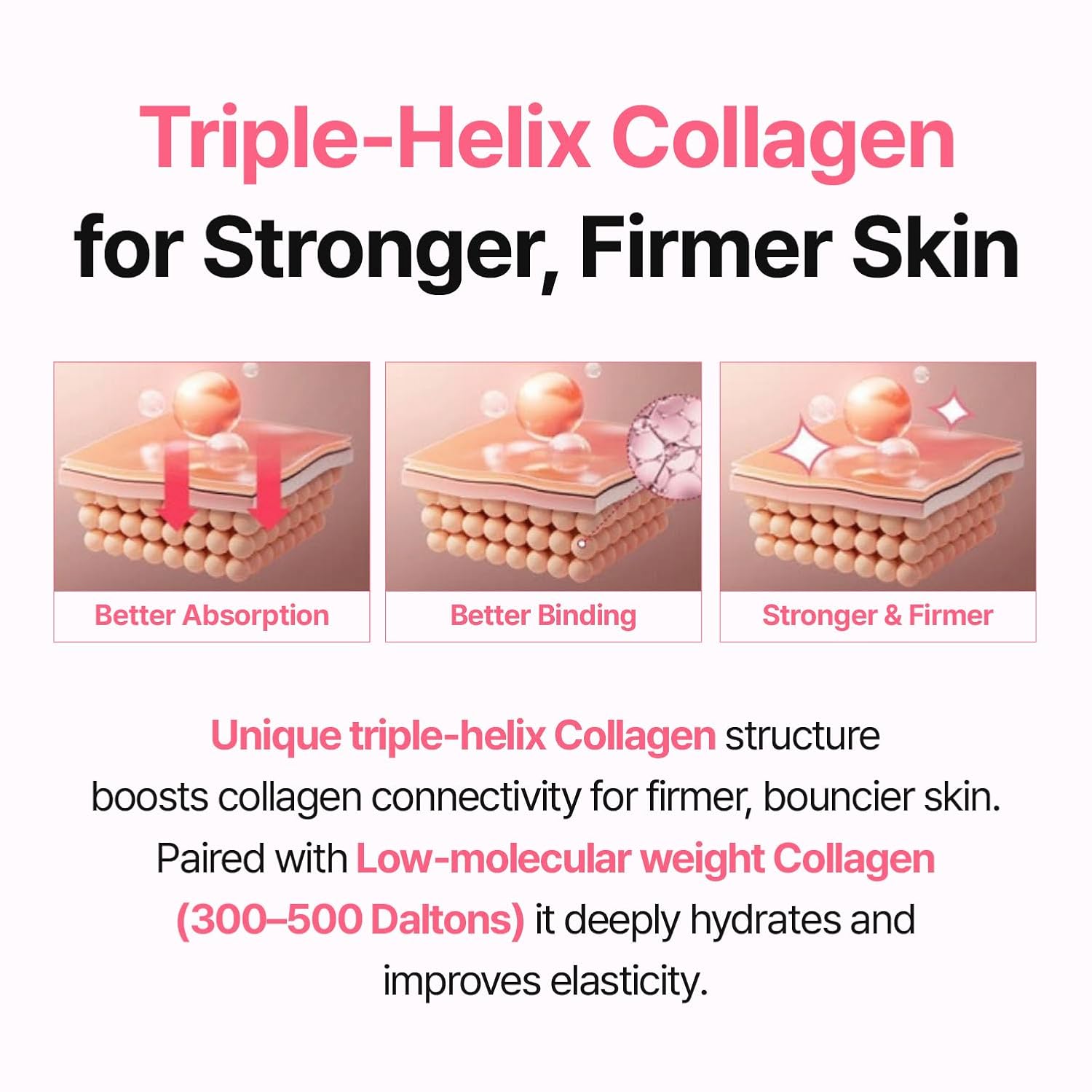 - ADVANCED LOW-MOLECULAR COLLAGEN ABSORPTION - Features low-molecular collagen (300-500 Da) and a triple-helix collagen structure for superior absorption and deep penetration. Enhances skin's natural collagen production, making it more effective than traditional collagen serums in improving firmness and elasticity.