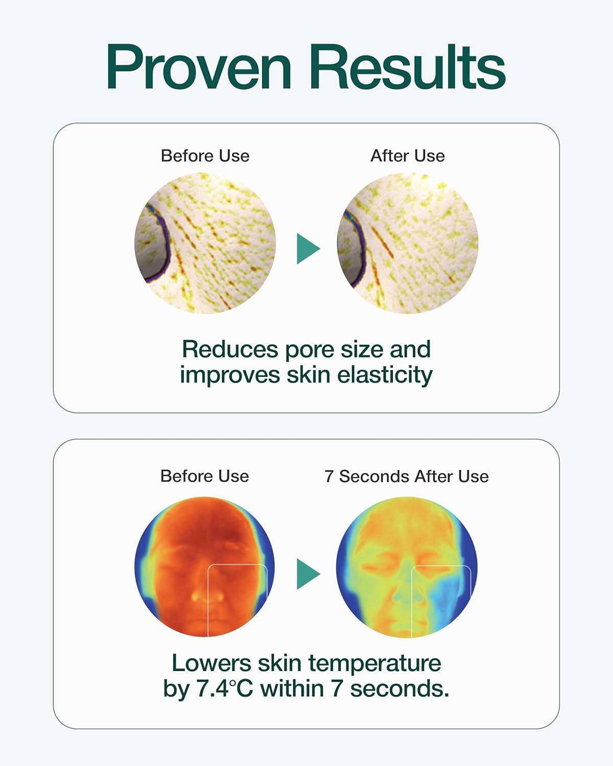 - INSTANT COOLING & SOOTHING - Delivers a refreshing cooling effect that lowers skin temperature by 7.4Β°C within 7 seconds. This soothing action helps calm sensitive skin, reducing redness and irritation while enhancing the pore-tightening process.
