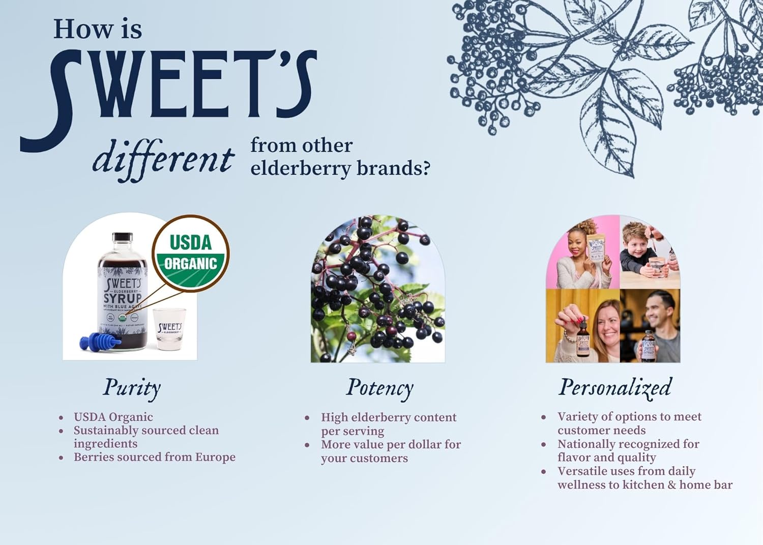 - USDA CERTIFIED ORGANIC INGREDIENTS: Sweet's Elderberry DIY Syrup Kit features organic black elderberries from Europe, combined with an organic spice blend including cinnamon, clove, and ginger. Enjoy a natural, high-quality immune support routine!