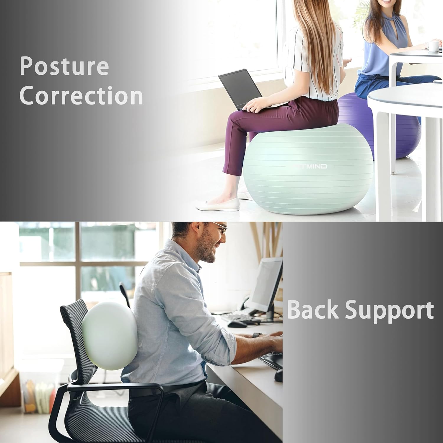 - 【440LBS Weight Capacity】The reinforced edges of the fitness ball provide cushion-like support. It is suitable for office use (e.g., as an office chair accessory) and fitness scenarios, with a maximum weight capacity of 440LBS.