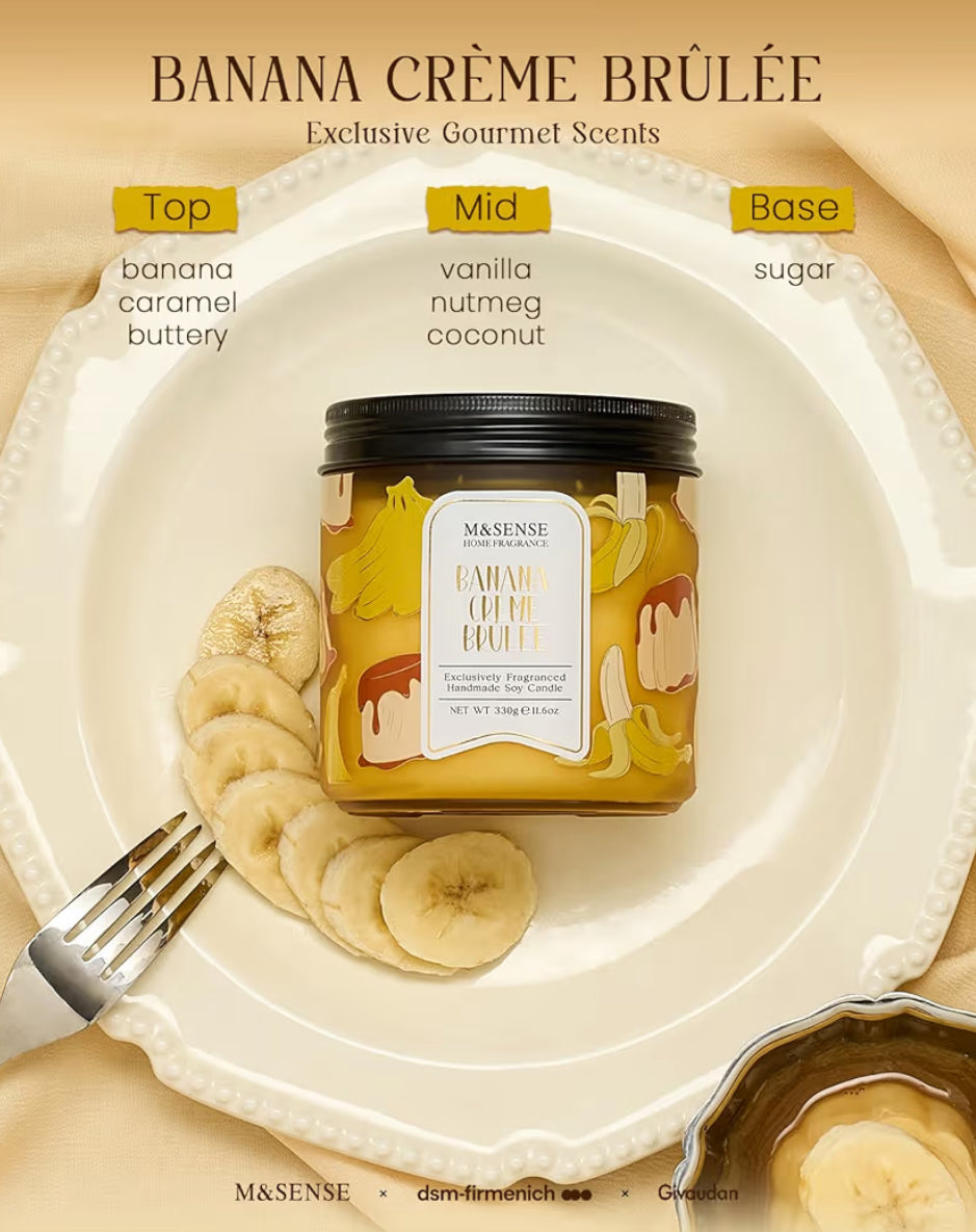 M&SENSE Banana Crème Brûlée Scented Candle, 11.6oz Natural Soy Wax candle, 70 Hours Long Lasting Clean Burn, Holiday Jar Candle for Home Decor, Non-Toxic Relaxing Aromatherapy Gifts for Women