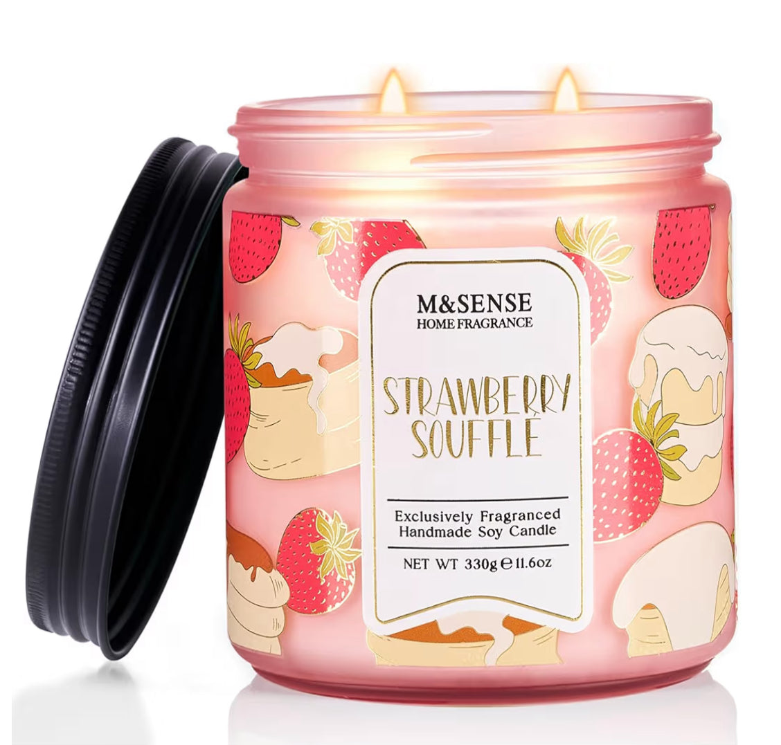 M&SENSE Strawberry Souffle Scented Candle, 11.6oz Natural Soy Wax candle Non Toxic, 2 Wick Jar Candle, Up to 70 Hours Clean Burn, Gifts for her to Creat a Sweet Ambiance