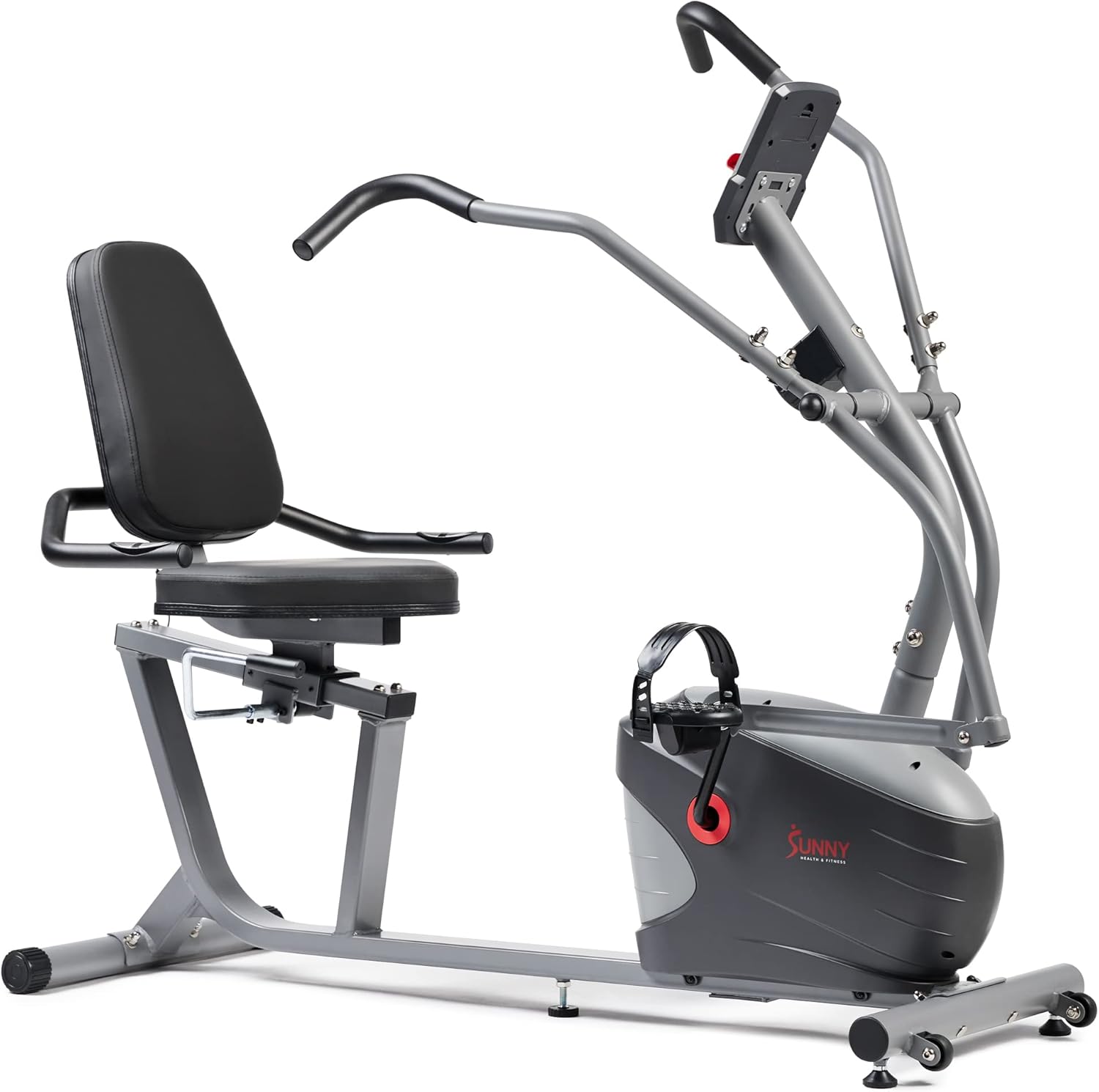Sunny Health & Fitness Smart Recumbent Bike, Full-Body Home Training with Arm/Leg Exercisers, Indoor Cycling Workout Machine Plus Adjustable Seat & Bulit-in Pulse Sensors, Free SunnyFit App Connection