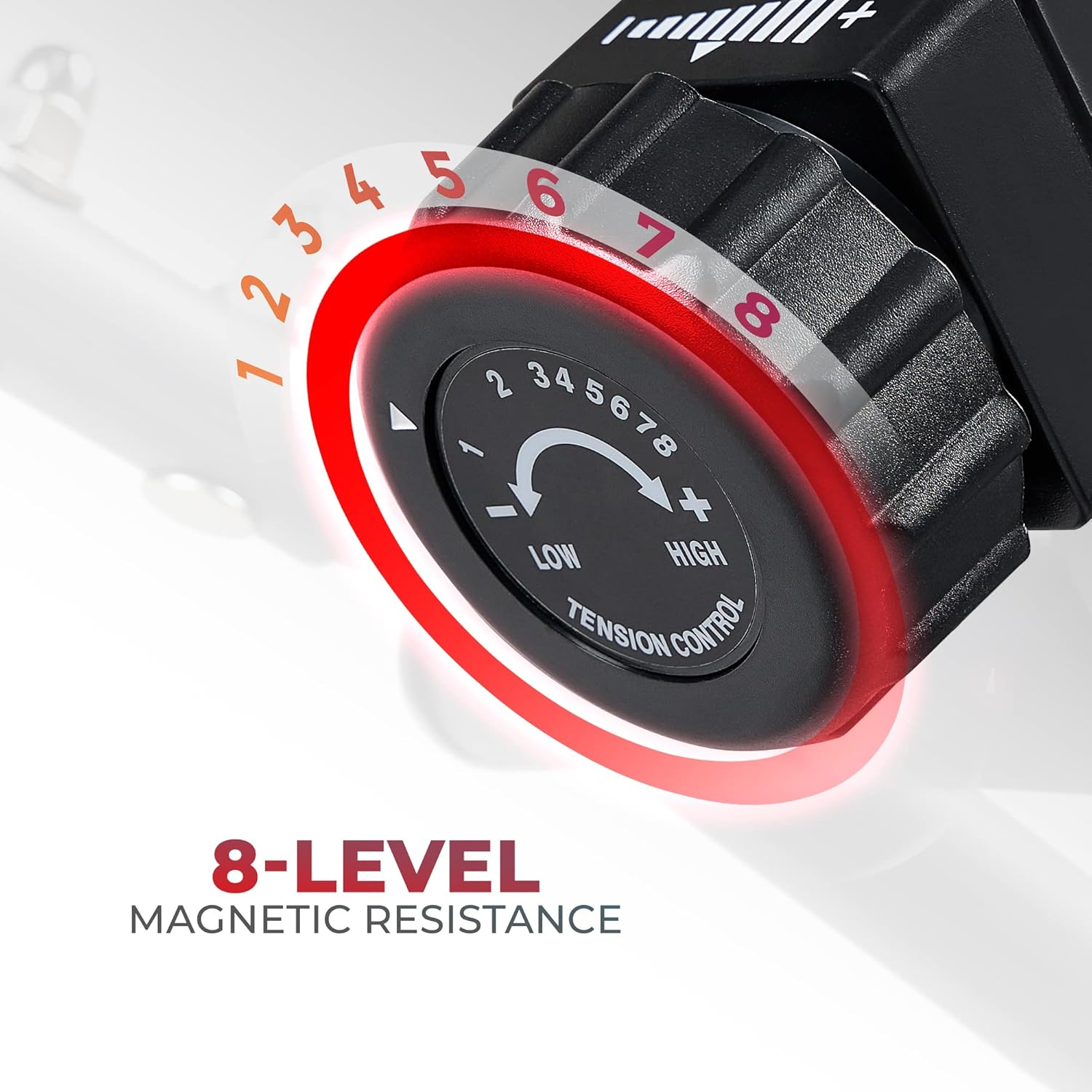 - 8-LEVEL MAGNETIC RESISTANCE: 8 Levels of smooth and adjustable magnetic resistance makes it easy to modify intensity to deliver the perfect workout challenge.
