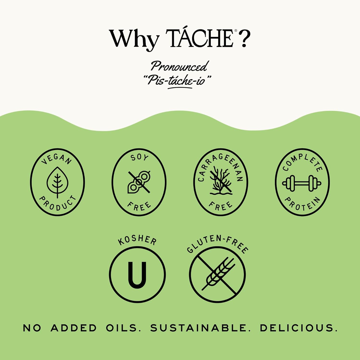 - SMOOTH, CREAMY & IRRESISTIBLY PISTACHIO: Meet Táche Pistachio Milk—the original pistachio cream alternative that’s silky, flavorful, and totally free from added oils. Crafted from real pistachios, it’s a luscious upgrade to your daily nut milk ritual that’s anything but ordinary.