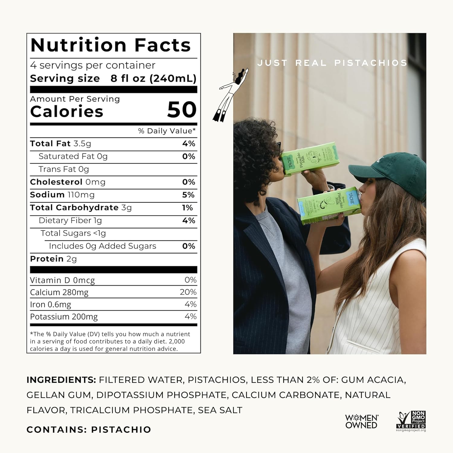 - PURE & UNSWEETENED PISTACHIO MILK: NO ADDED OILS OR SUGAR - Enjoy the clean, smooth flavor of Táche Pistachio Milk Unsweetened—crafted from real pistachio nuts, with zero added oils or sweeteners. This refreshing nut milk is a delicious dairy-free alternative for those seeking a simple, wholesome cream milk option.